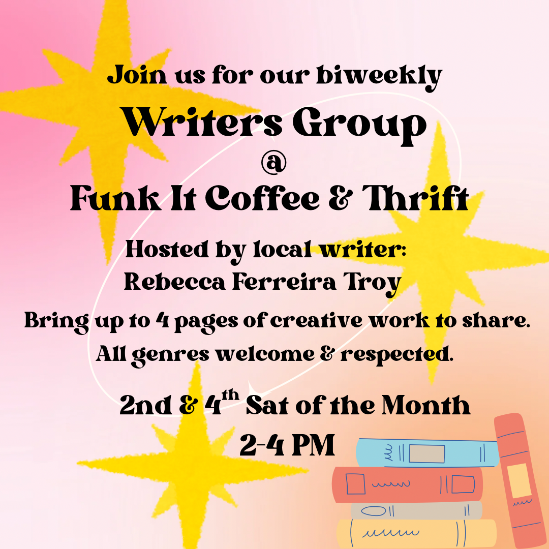 WHAT: Bring writing to share for constructive feedback or join us for creative inspiration