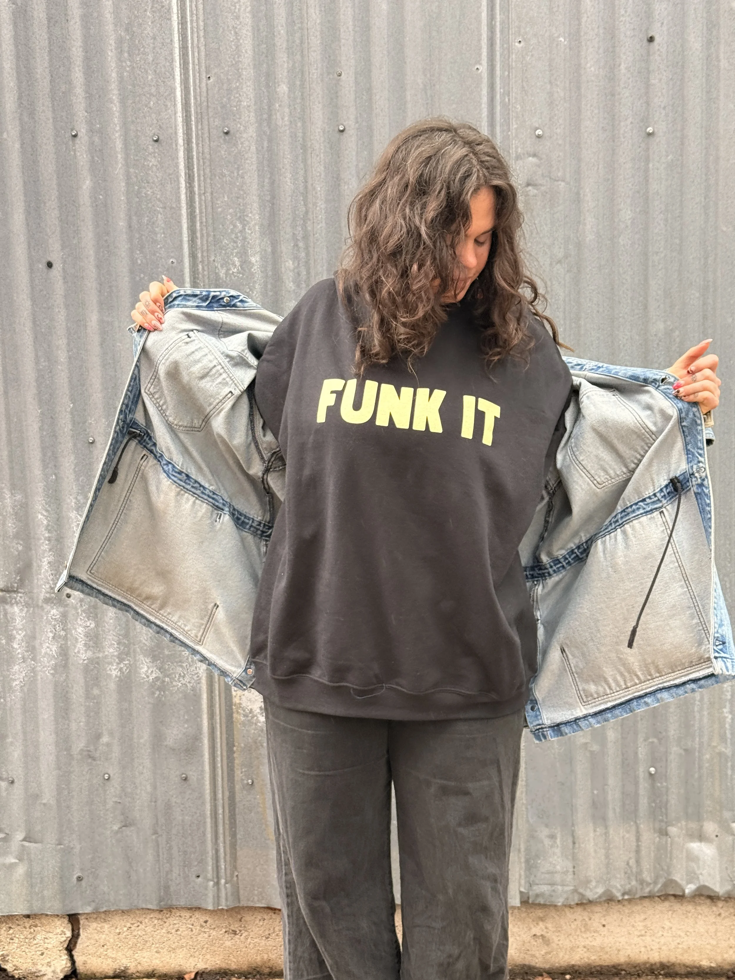 The Statement: Bold "FUNK IT" embroidery that reminds you to stop overthinking and start living.
